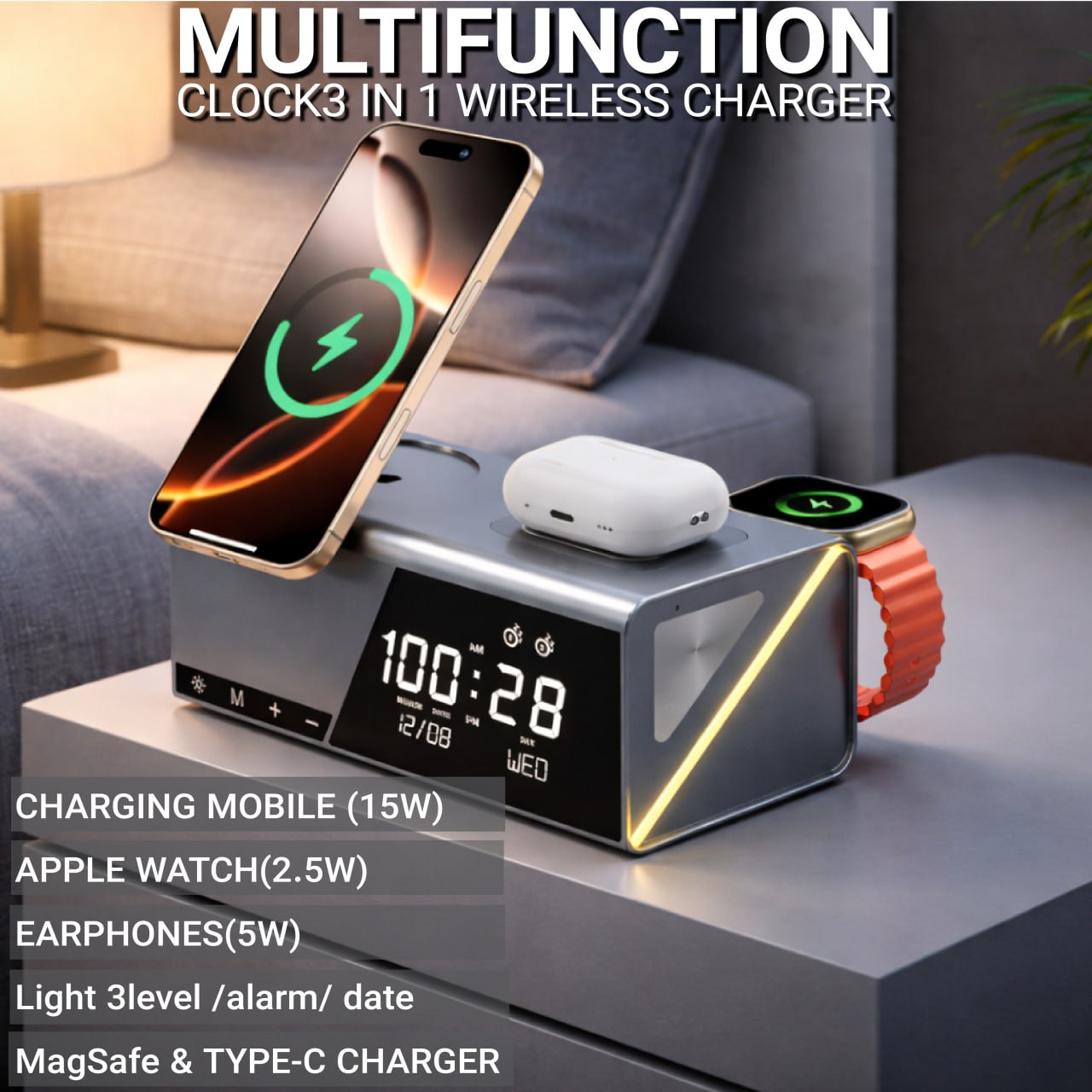 شارژر 3 کاره به همراه ساعت دیجیتال
